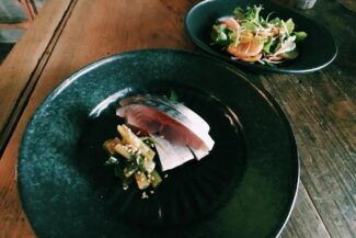 And the service manager, Michie Yazawa, speaks about the scenery of the sea and mountains of all areas of Japan, the farmers, and the food whenever there is a spare moment. The sight of grape vineyards float in his eyes, and the days are filled with thoughts of the marriage of the heart and tongue with wine. She visited liquor shop’s owners in Sanriku after the Great Tohoku Earthquake Disaster, sheding tears for their loss of their hard work and strength. She looked upon the rural landscape of golden stalks of rice swaying in the wind brought back with hard work from the loss by water. The dishes which go with those ingredients were also made by local porcelain craftsmen such that the intimate handiwork can be seen to match the cuisine.